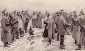 In 1914 a British soldier in the trenches listened to German soldiers singing Silent Night in the darkness and risked his life to stand up and join in. Soldiers from both armies spent Christmas exchanging gifts and playing ball…a small respite from killing one another.