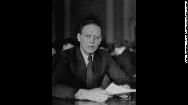 American hero Charles Lindbergh, who in 1927 was the first to fly solo across the Atlantic, sits before the US Congress and encourages the US to remain neutral with Nazi Germany.