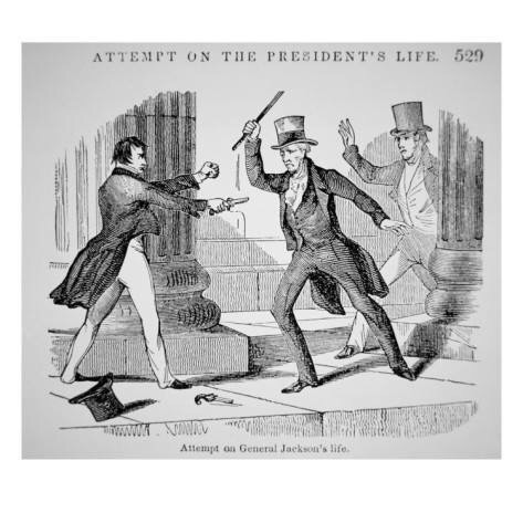 Today in History, January 30: 1835 – The first assassination attempt on an American President occurs when an insane out of work English painter approaches President Andrew Jackson as he walks out of the East Portico of the US Capitol, and attempts to fire two pistol in succession at the President. Both pistols misfired, “Old Hickory” clobbered the would be assassin with his cane, and nearby legislators including Davy Crockett subdued the man. The attempted assassin initially said he was angry about President Jackson’s efforts to dismantle the corrupt Second Bank of the United States, which he felt caused his unemployment. Soon he was claiming that he was a deceased King of England, however and was deemed insane. He was tried for the crime (the prosecutor was Francis Scott Key) and found not guilty by reason of insanity. He would spend the rest of his life institutionalized. Conspiracy theories abounded…Jackson suspected Senator John C. Calhoun of sponsoring the attack, which Calhoun denied on the Senate floor. Others suspected Mississippi Senator George Poindexter, who’s house the man had recently painted…so much so that Poindexter was voted out of office. In his inaugural address President Jackson stated, in part, “I feel in the depths of my soul that it is the highest, most sacred, and most irreversible part of my obligation to preserve the union of these states, although it may cost me my life.” It very nearly did.