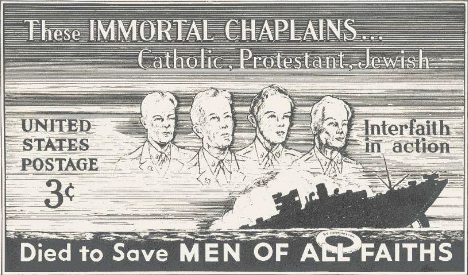 As they abandoned ship, four Army Chaplains did all they could to assist. Reverends George L. Fox and Clark V. Poling, Father John P. Washington and Rabbi Alexander D. Goode passed out life jackets and helped the men into life boats. Then when the life jackets ran out, they each removed their own and gave them to others.