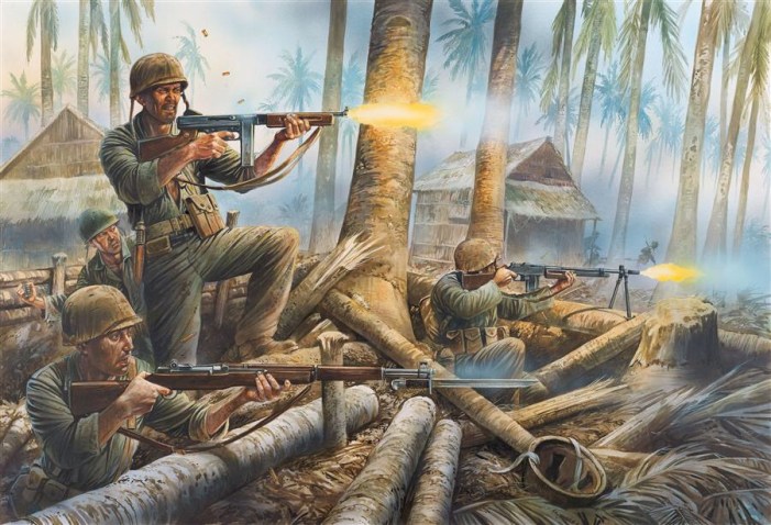 The Marines quickly took the airfield, and named it Henderson Field, after a Marine Captain that gave his life at another pivotal battle, Midway. The Marines struggled back and forth over Henderson for months, but held it…which meant that the Marine air and Navy air forces called The Cactus Airforce could defend the island from nightly bombardment and constant attempts at reinforcement by Japanese forces.