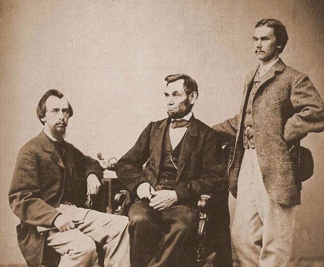 Today in History, March 4: 1861 (Lincoln Inauguration) / 1905 (Theodore Roosevelt Inauguration) – A very special connection between two Presidents, 40 years apart. As a young man in Illinois, John Hay got the chance of a lifetime. His friend John Nicolay was working at the law firm of Abraham Lincoln, Presidential candidate. When Lincoln was elected, Hay and Nicolay became his private secretaries in the Executive Mansion and became his confidants…he would stay up nights sharing stories with them and came to trust them; they helped to keep him balanced through the trials and tragedies of the Civil War. They, in turn nearly idolized him, referring to him as the Ancient One. When Lincoln was assassinated it devastated Hay. He recovered and went on to serve in numerous posts within the government, including the Ambassador to the Court of St. James (England); he was a successful author and journalist (remarkably understated..but I must keep this somewhat brief). He served several other presidents, becoming Secretary of State for President William McKinley. When McKinley was assassinated, Hay stayed on to serve in Theodore Roosevelt’s administration. He was largely responsible for the Open Door Policy in China and negotiated the Hay–Bunau-Varilla Treaty to build the Panama Canal. He initially thought TR a rogue cowboy, but as he grew to respect the President, they became fast friends. TR came to respect Hay’s experience and wisdom, and came to depend upon him. The night before TR was to be inaugurated for his second term, his first in which he was elected, John Hay sent TR a gift. A ring containing a strand of President Lincoln’s hair under glass, taken during his autopsy. Hay included a note: