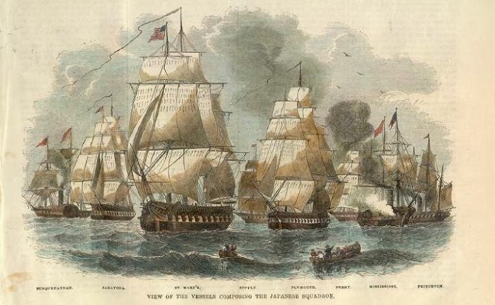 Today in History, July 8, 1853:US Navy Commodore Matthew C. Perry and his fleet arrive in Edo Harbor (Tokyo) Japan and by threat of force, demand that the Japanese contemplate relations with the US. Faced with the threat of bombardment from Perry’s ships, the Japanese accepted a letter from President Millard Filmore. When Perry returned the next year, the offer of open relations was accepted. The rest of the story is that Commodore Perry also pioneered steam power in the Navy, served under his famous older brother Oliver Hazard Perry (“We have met the enemy and they are ours!”) during the War of 1812, was a hero in the Mexican-American War, and he and his brother were direct descendents of William Wallace. Wow. The irony cannot be ignored that America dragged Japan kicking and screaming into the modern industrial world, and less than a century later would have to fight a thoroughly modern Japanese military in a world war. And then would drop an Atomic bomb on their homeland.