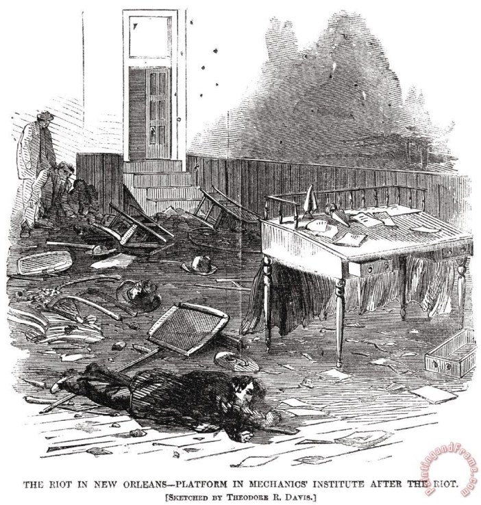 The New Orleans Riot. NOLA had been under Union control for most of the Civil War, although deep South in geography and sentiments. In 1864, a state convention of mostly Confederate sympathies had tried to enforce “Black Codes” to limit the rights of Freedmen.