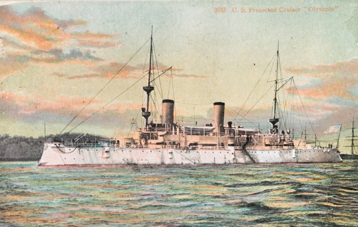 The Olympia had a distinguished career. in 1898 she was Admiral Dewey’s flagship during the Battle of Manila Bay in the Philippines (Spanish-American War) in which the American fleet devastated the Spanish Fleet, propelling the US to international player status.
