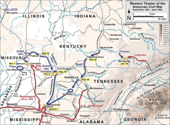 But Confederate Gen. Albert Sidney Johnston, considered second only to Robert E. Lee by both armies, had different ideas. His troops, in addition to those of CSA Gen. Pierre G. T. Beauregard almost literally caught the Northern Army sleeping….attacking in the morning and routing the Yankees.
