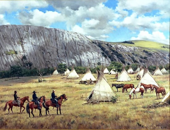 As the morning was dawning over the sleepy village, Chief Black Kettle saw them approaching, and hoisted the Stars and Stripes above his Tipi as a sign of brotherhood and peace. And then the blue coated soldiers began firing.