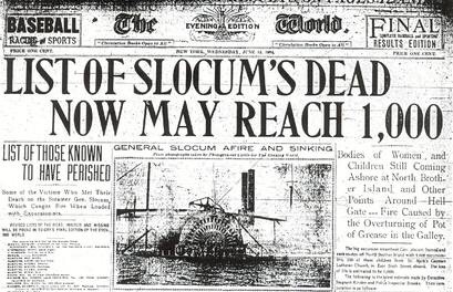 The General Slocum Disaster. The St. Mark’s German Lutheran Church charters the River Boat General Slocum to transport their teachers and children across the East River to Brooklyn to hold their annual picnic.