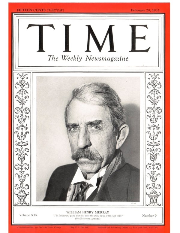 Oklahoma Governor William “Alfalfa” Bill Murray makes the cover of Time magazine when he announces his candidacy for US President.