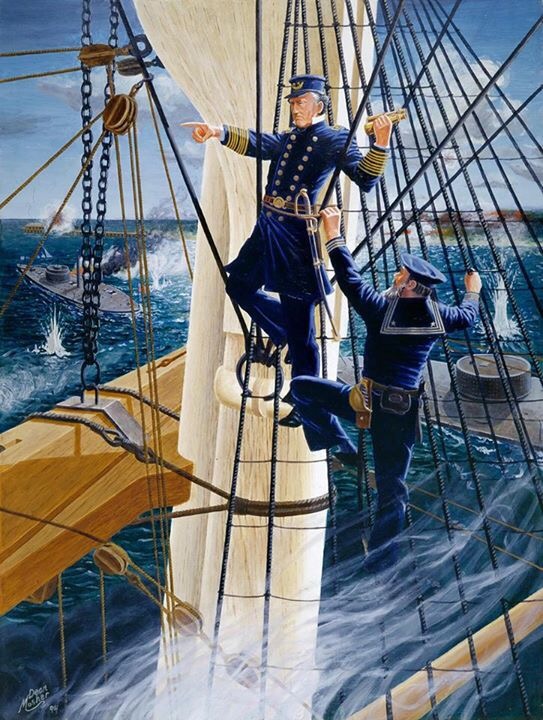 US Navy Admiral David Glasgow Farragut was tasked with closing this last Confederate source of supplies. His fleet had to fight past the Confederate fleet of ironclads and two forts that guarded the bay. As the battle progressed, the Union fleet began to fragment, until Farragut rallied his sailors with famous admonition, winning the battle.